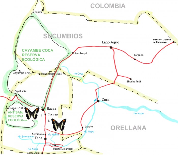 very likely Adelpha seriphia aquilia females photographed by David Geale and Tom Horton at Yanayacu and WildSumaco ; but Adelpha margarita cannot be ruled out even if there are no records of this species North of Puyo.