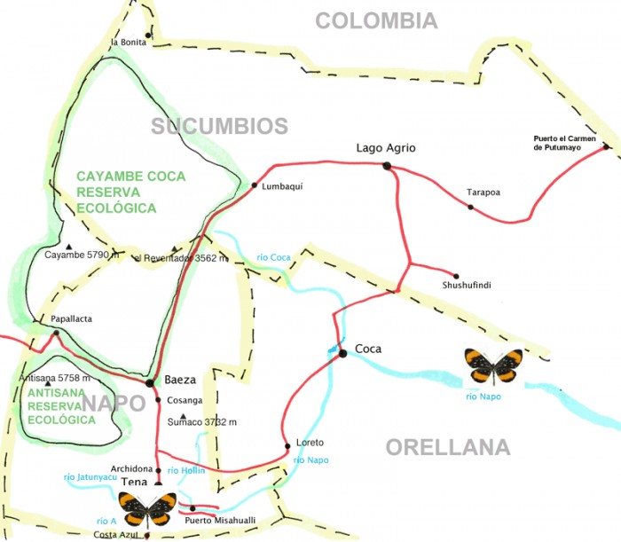 Stalachtis euterpe latefasciata, 11 y 20 km Sur de Tena, Shushufindi, Panacocha.