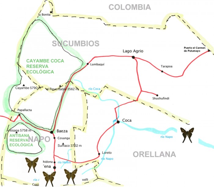 Chioides catillus (o Chioides catillus catillus), fotografiada por David Geale, Jeffrey Glassberg y Jackie Riley en las proximidades de Tena, y por Frode Jacobsen a Jatun Sacha y por Gaell Mainguy a el Pilche.