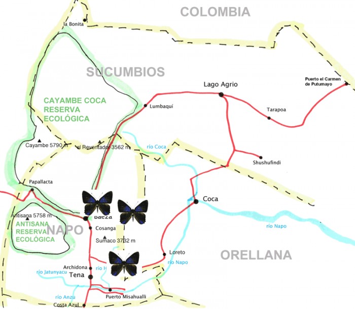 Euselasia corduena, rio Bigal, rio Hollin, rio Quijos.