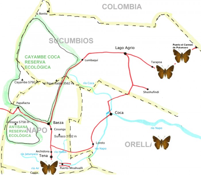 we saw this Telemiades sp South of Tena, at Unión Nacional Cuyabeno, Marian and Yasuni.